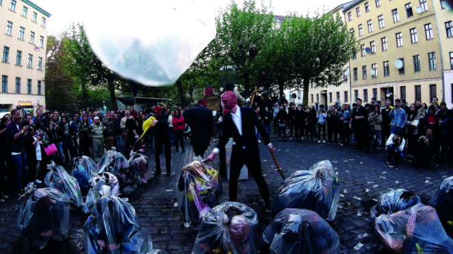 Põhimõtteliselt ega me ju kedagi ei vigasta ega midagi lõhu. Meie üks kõige tähtsamaid performance’i reegleid on, et publikut ei tohi vigastada. See kõik tundub tohutu kaos, aga ei tohi ära unustada, et performance’i puhul ongi ülioluline ja ülihea kui segi lähevad tegelikkus ja näilisus. Kui kunstiline kujund on nii tugev, et inimene tajub seda reaalsena –ongi tegevuskunsti üks kõige kõvemaid karakteristikuid.