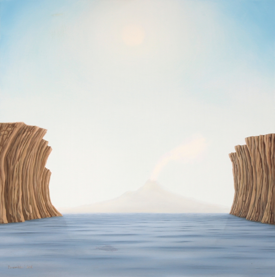 This absence becomes conceptually significant. The implied figure would perceive only the sky mirrored in the water, remaining unaware of the fish moving beneath. The composition thus reflects on selective perception — on the tendency to register surface reflections while overlooking underlying realities.