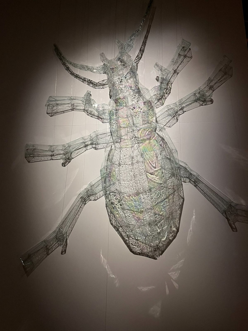 Carabus nemoralis (the ground beetle) is one of the most beneficial predators in our gardens. The artist seeks to draw attention to this species by presenting it at an enlarged scale.