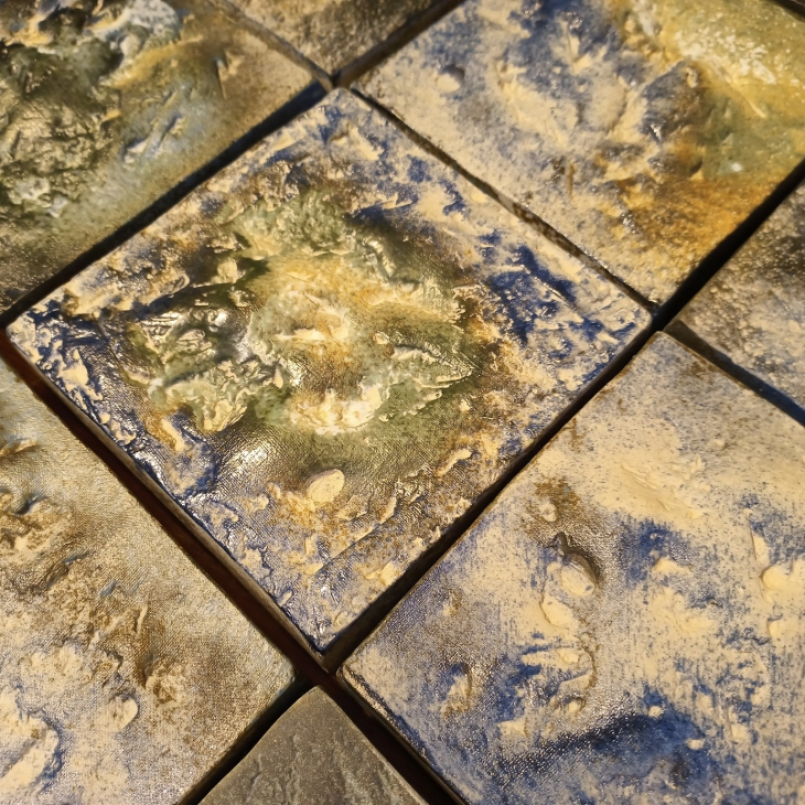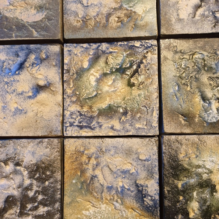 Composed of 16 blocks measuring approximately 15 × 15 cm each, with a height of 3–4 cm.