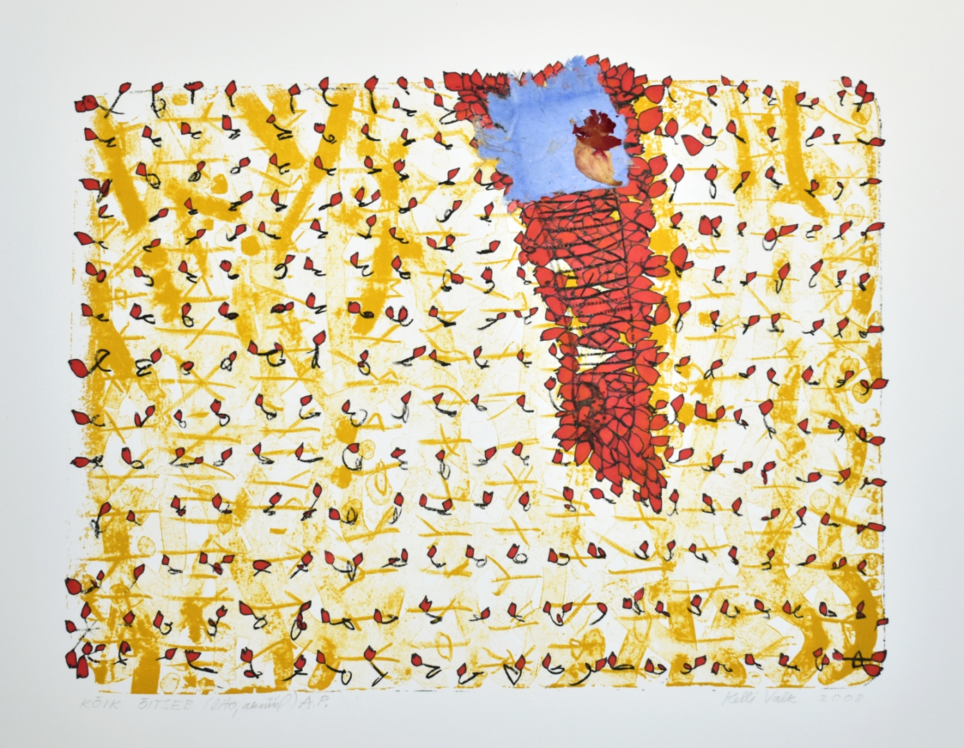 Lithography materials, acrylic, collage