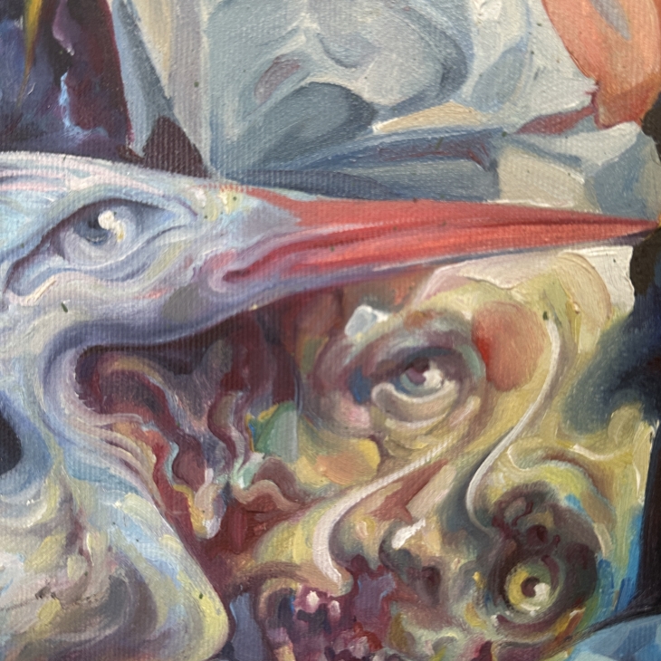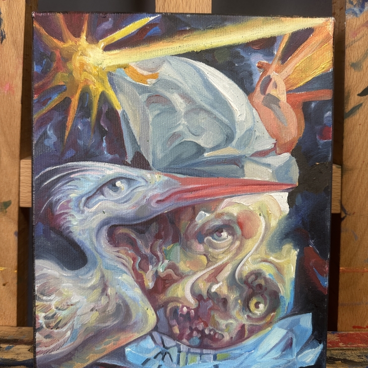 This work captures a moment of inner rupture, where human and animal forms merge into an unstable image of the self. Light acts as an intrusion, intensifying tension and fragmentation within the composition.