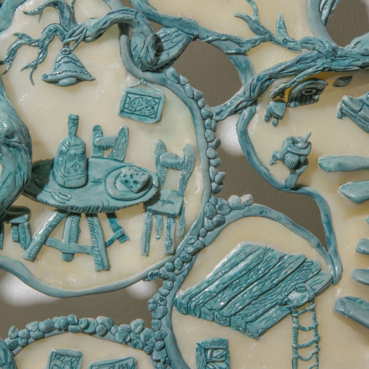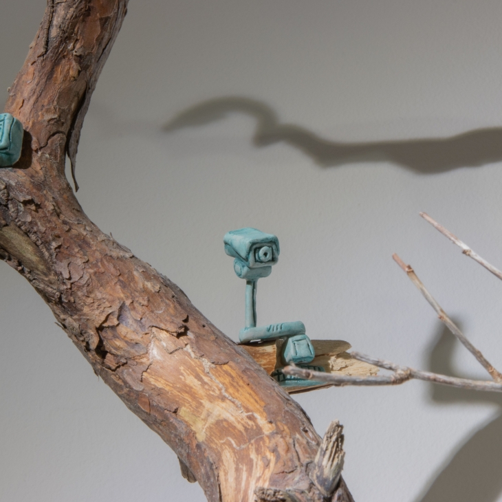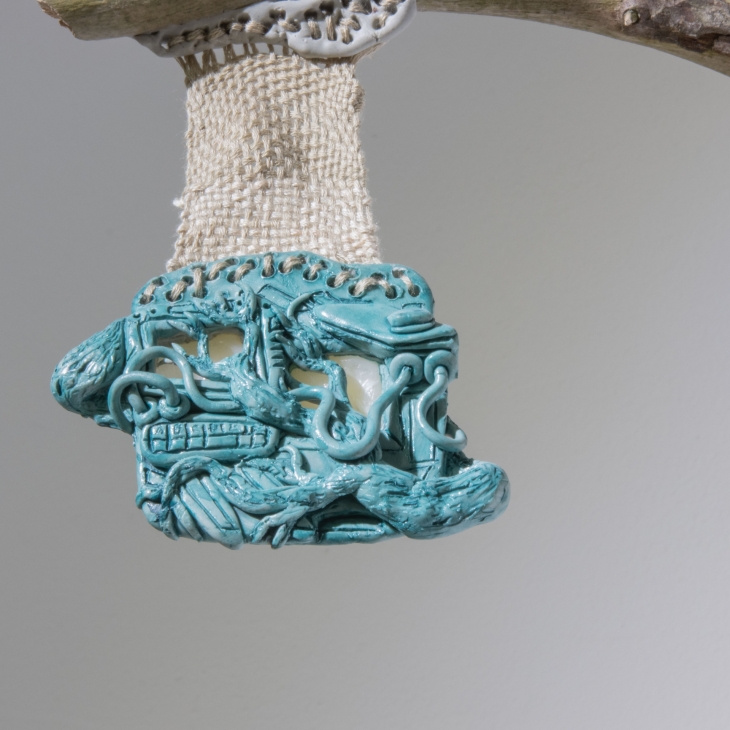 Clay, resin, alder branch, iron
