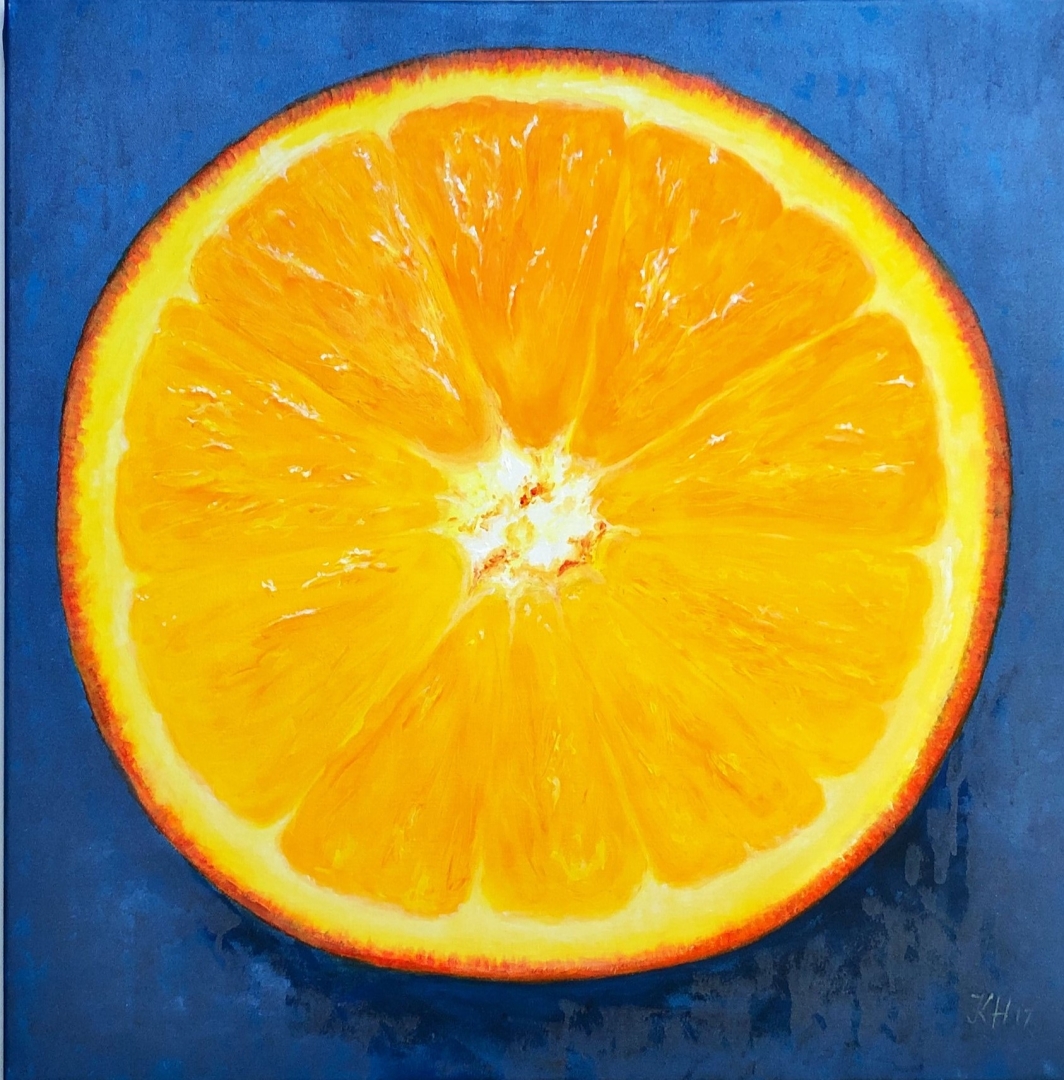 The painting “Orange” is one of six works in the series “It’s a Matter of Taste”, expressing the idea that things in themselves are neither bad nor good — the question lies solely in our attitude toward them. The price of the six paintings as a complete series is 2000 EUR.
