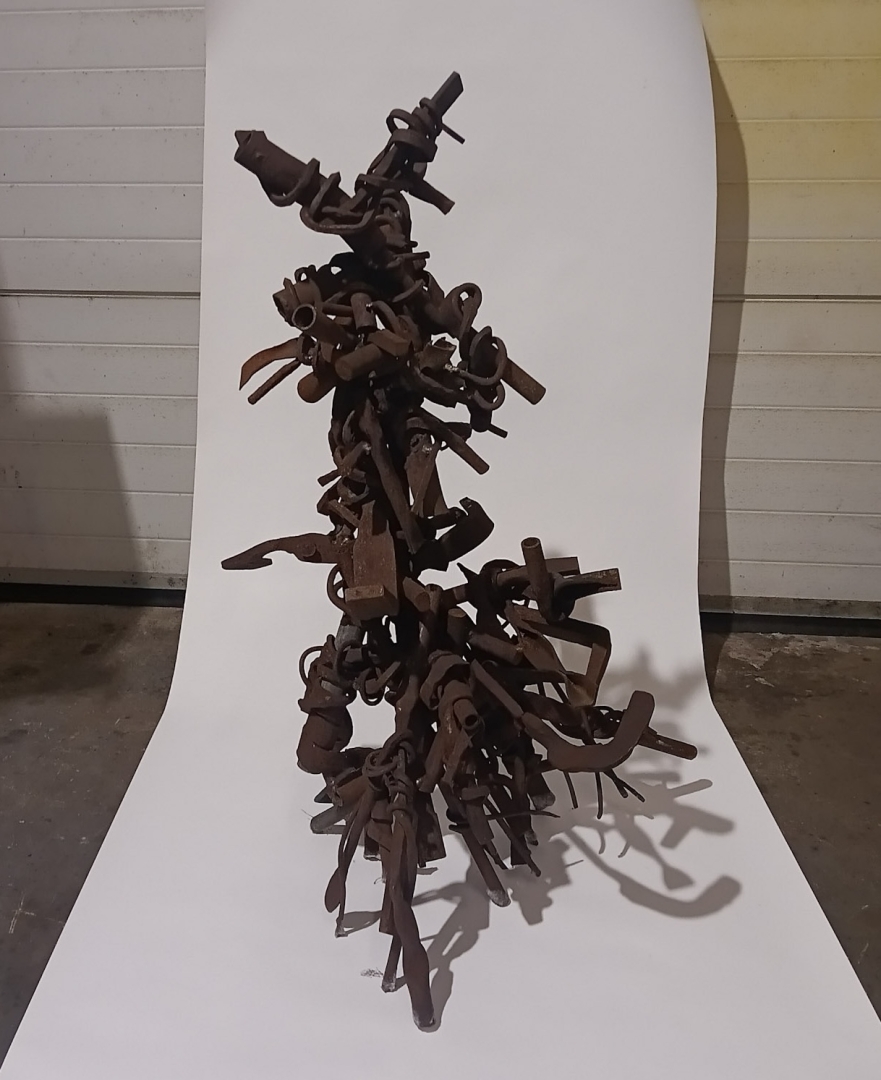 KRATT is assembled from fragments of various earlier sculptures and installations. The work incorporates elements from objects that could not be preserved in their entirety due to lack of space.