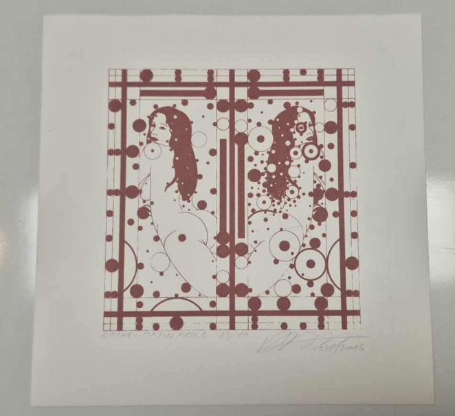 Serigraphy, edition: 40. Image size 13 x 14 cm