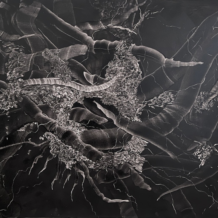 The work belongs to a series inspired by organic proliferation and the development of self-forming structures. The branching and layered form remains suspended between nature and an abstract system, referring to growth, interconnectedness and constant transformation.