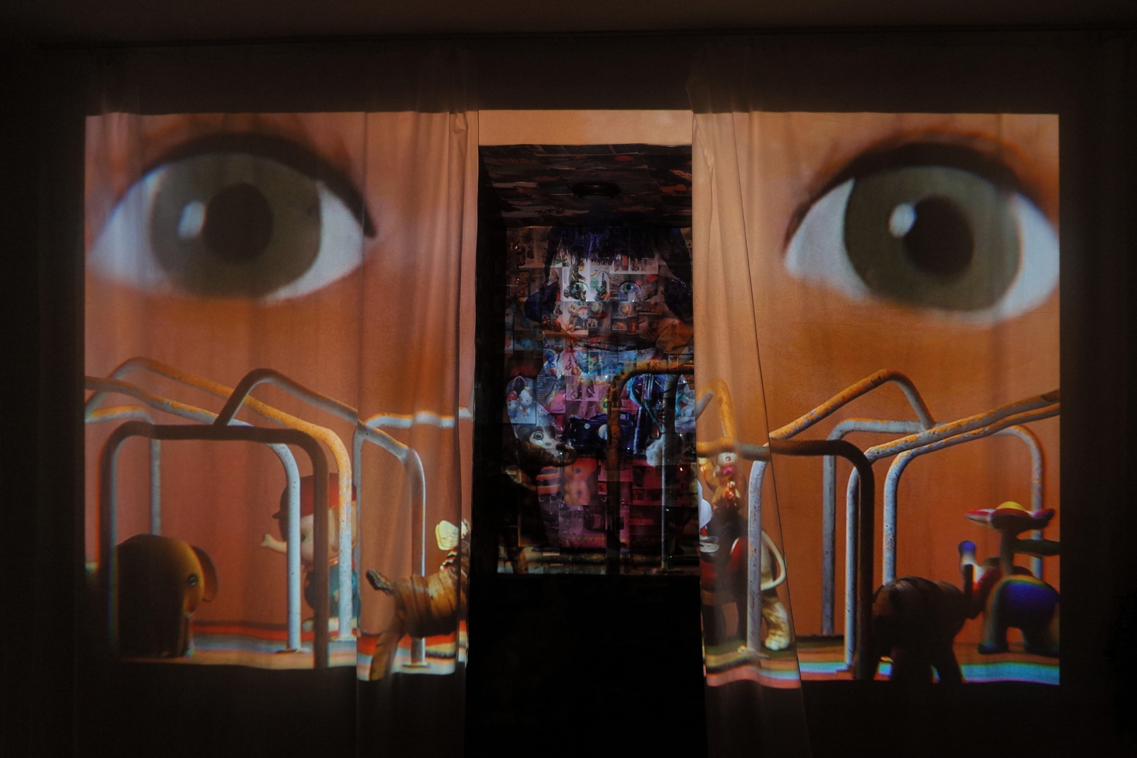 1.Experimental Animation |Color|8minutes |Projector 2.Digital Puppetry Video Game |Color|Computer 3. Puppet sound installation |Egg box,Speaker Son to Sun: The Forever Elephant (象像)is the artistic research project composed of two works: an 8-minute experimental animation and an embodied, interactive digital puppetry video game,hybridizing AI-generated visuals with 3D-scanned antique toys of doll and elephants. Together, they perform a funeral rite not only for an elephant, but also for the ontology of the image itself. In an era of digital oversaturation, material dissolution, and symbolic disorientation, the project stages a reincarnation ritual for the image, exploring how it might live, die, and be reborn in a post- representational world. Set within a liminal space, the elephant is animated not as representation, but as a playful, unstable presence something between 象(imagery) and 像 (image), ancient bone and digital skin, memory and prototype. Drawing from new materialism and media materiality, the project proposes a shifting methodology of image-becoming: recursive, embodied, and speculative. This project asks: what does it mean for an image to live, die, or be reborn?