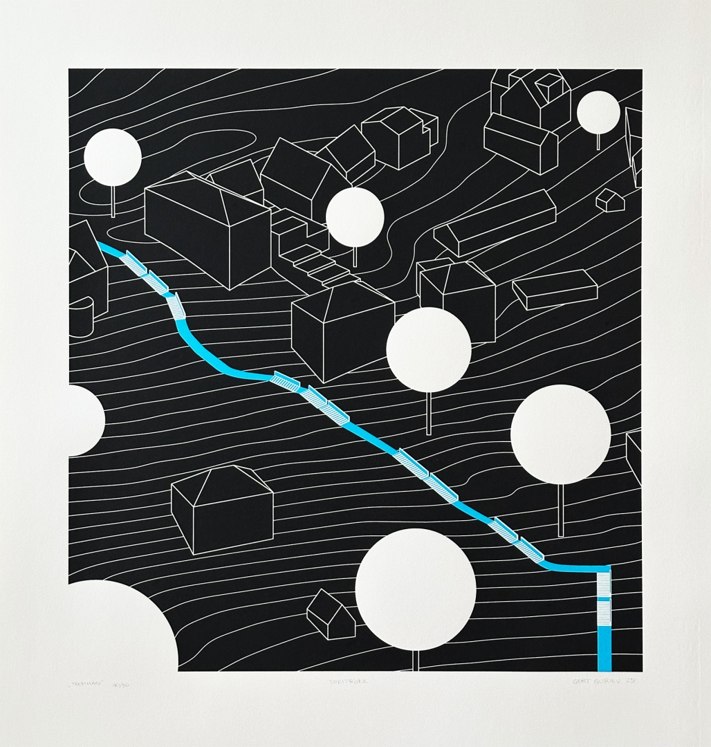 The work depicts one of Viljandi’s most important landmarks – Trepimägi (Stairway Hill). Guriev, an architect born in Viljandi, is one of the authors of the project. The piece was created to raise donations for the construction of the stairway hill, where people could symbolically “buy” a single step and thus make their contribution. The work was given as a gift to major supporters. The new Trepimägi was opened in 2025, renewing the historic connection between the town and the lake.