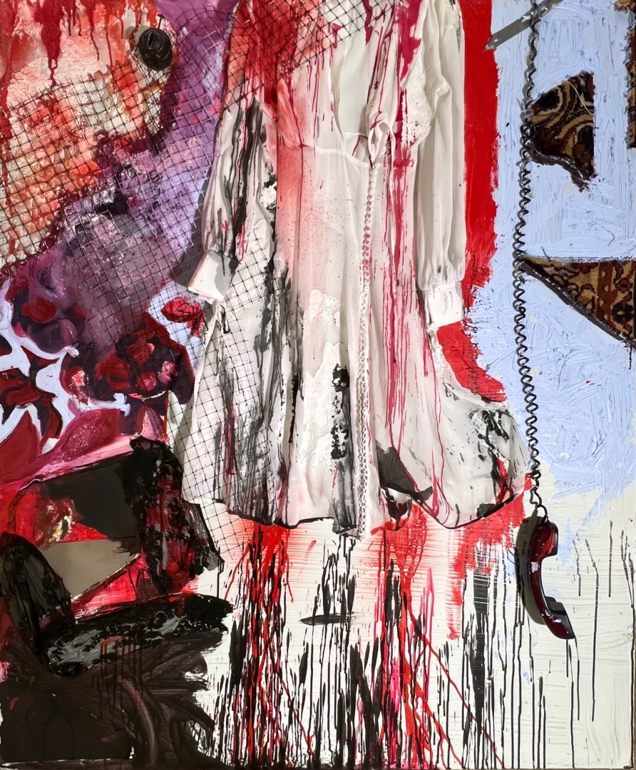Kleit, traat, telefonitoru, spreivärv, õli