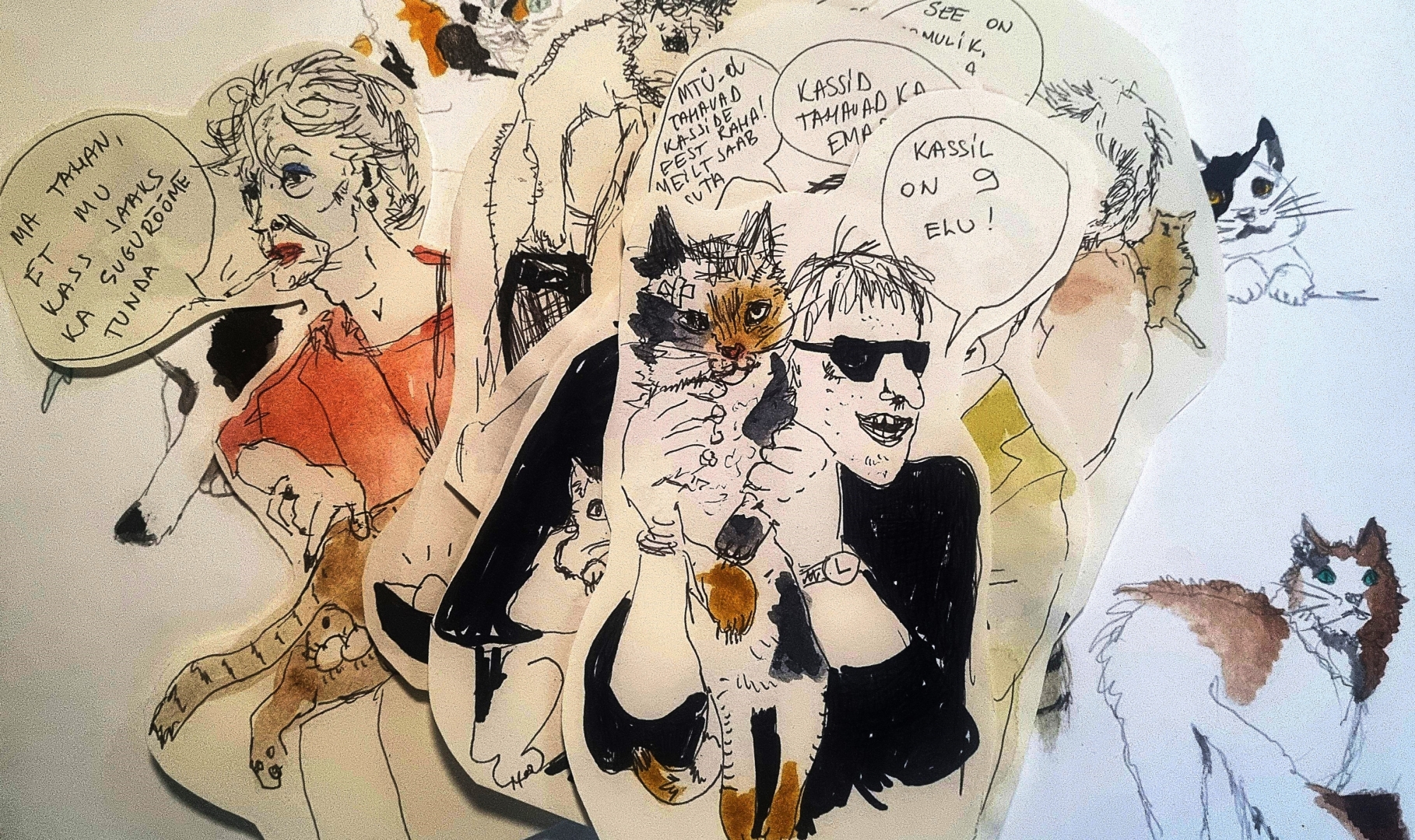 esile kassid, loomad kes on aegade jooksul galerii koduks olevas Vana-Kalamaja tänava majas