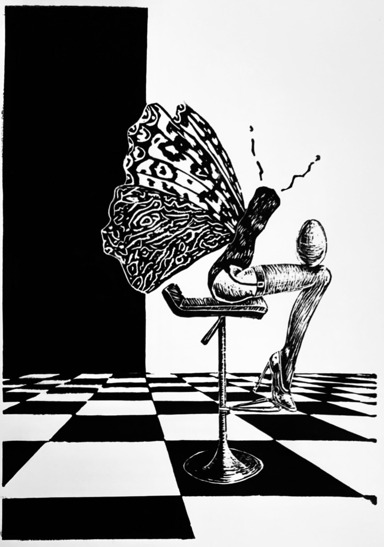 Seeria värskeim teos “Kolmas vaatus, stseen neli” valmis käesoleval aastal (2026) ja ilmutas end kunstnikule unenäos. Metafüüsiline seeria „Kolmas vaatus“ kujutab libliknaist tema elu kolmandas faasis – hetkes, kus sisemine transformatsioon on viinud küpsuse ja eneseteostuseni. Rööviku- ja kookonifaas jäävad vaid kontseptuaalseks taustaks, tähistades sisemist arengut, mis kulmineerus liblikana esileastumises. Libliknaine seisab rambivalguses, seljatagune vari teda toetamas. Mustvalge mänguruudustik sümboliseerib valikuid, mille keskel ta astub nüüd teadlikult just valgele ruudule. See on hetk, kus haavatavus muutub jõuks ja nähtavaks saamine ei ole enam oht, vaid valik. Vertikaalselt jagatud mustvalge taust kujutab aegruumi, kus vari on sama suur kui valgus, mis selle tekitas. Tasakaal selles ruumis ei ole püsiv seisund või juhuslik harmoonia, vaid pidev teadlik protsess.