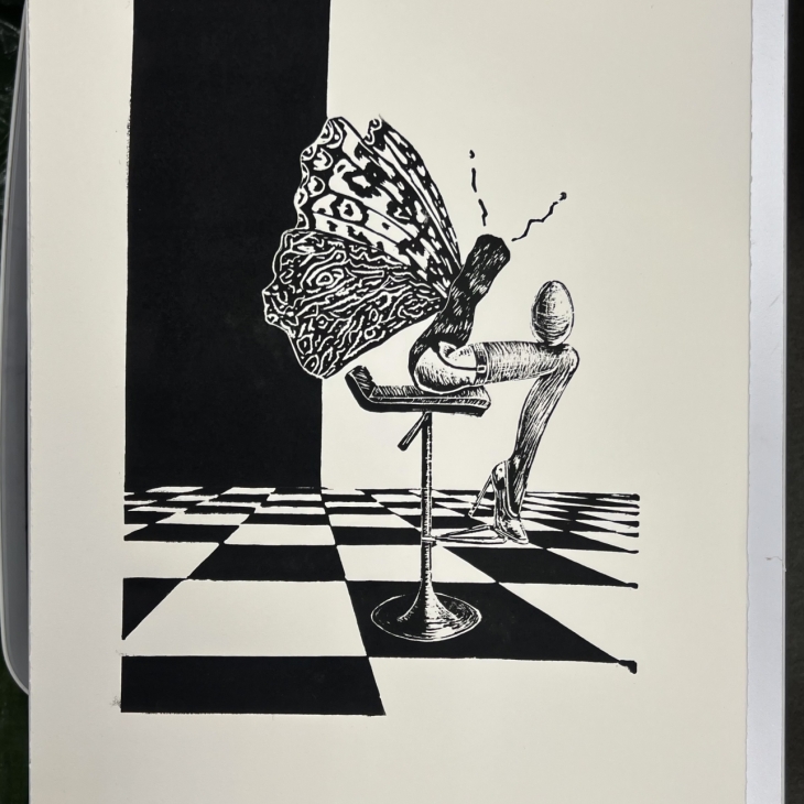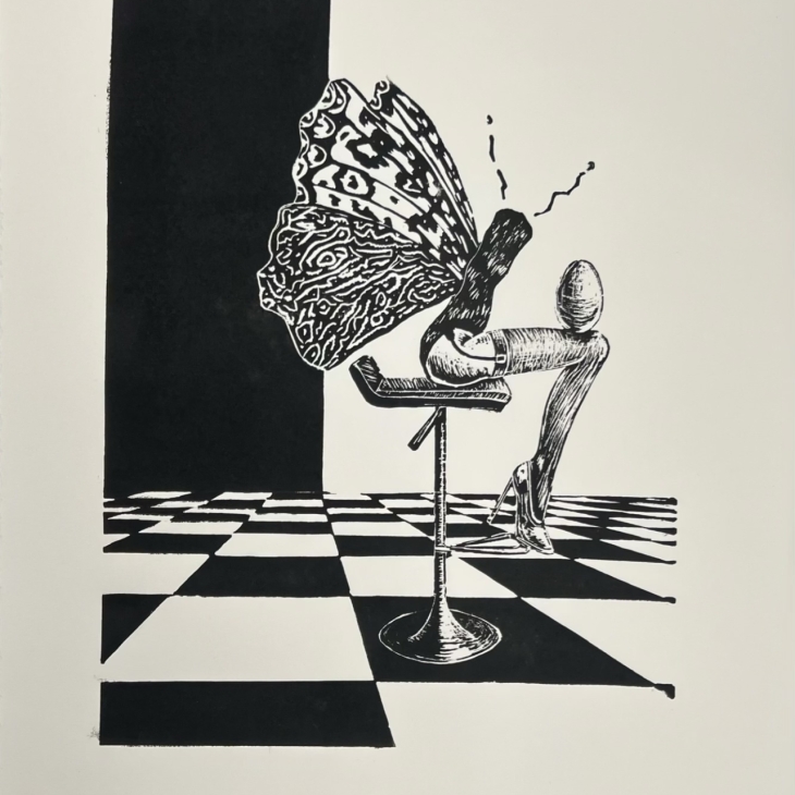 Tegu on sarjaga, mis avardub ajas ja ruumis – iga uus stseen tähistab peatükki kunstniku eneseleidmise loos. Seeria esimene linoollõige “Kolmas vaatus” pärineb aastast 2023 ning osales aastal 2024 Tartu Kunstioksjonil. Linoollõige “Kolmas vaatus, stseen kolm” (2025) osales “Osta noort kunsti” sügisoksjonil 2025 ja näitusel “Multinektar multiversumis” Galerii Pallases.