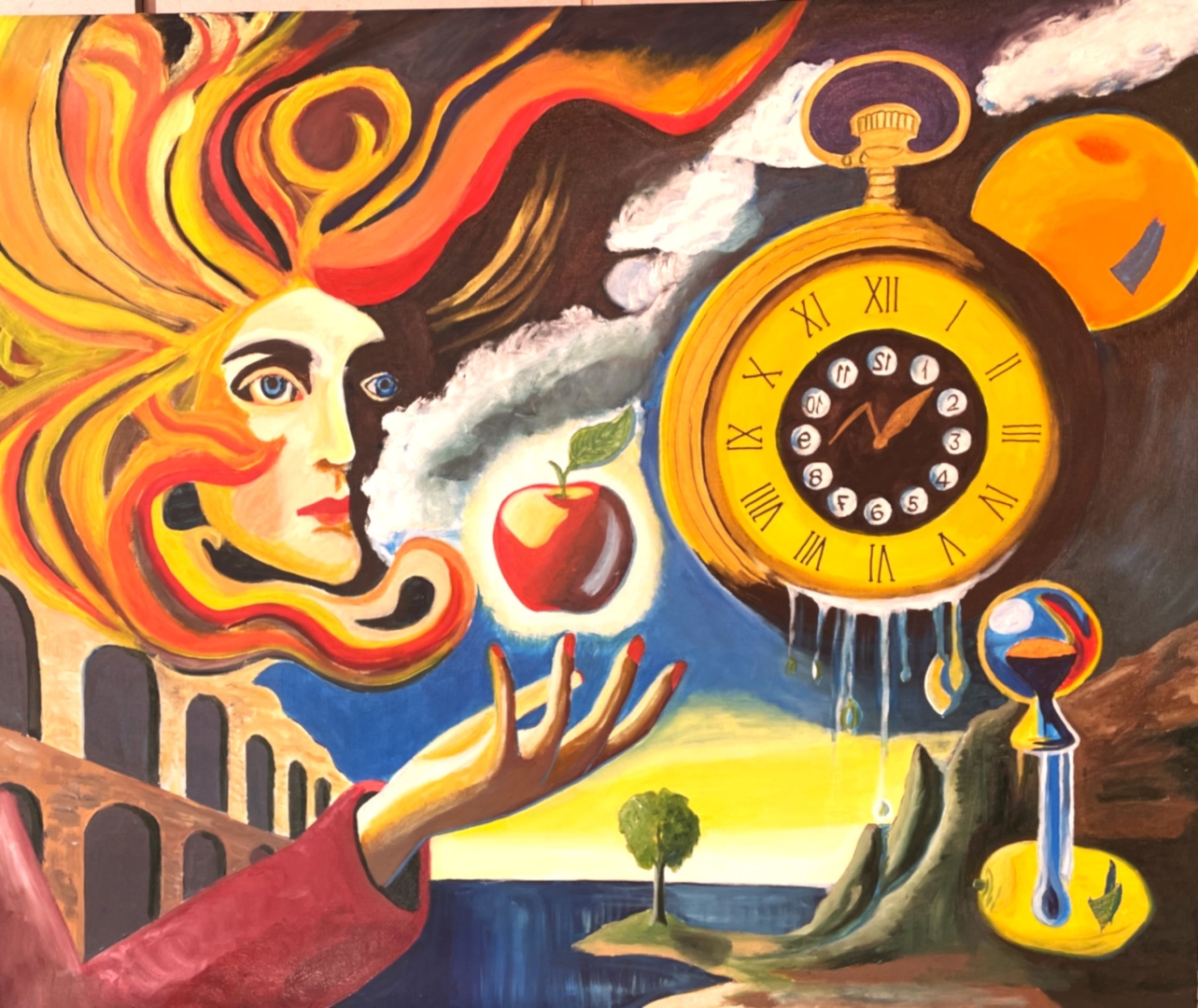 Selles teoses põimuvad aeg, iha ja valgus. Igavese nooruse õun ei ole siin lubadus ega saak, vaid küsimus – mida tähendab püsida, kui kõik muu voolab? Sulav kell ja nuttev liivakell nihestavad harjumuspärast ajataju, muutes hetke venivaks ja ebakindlaks. Õun, sidrun ja apelsin moodustavad tasakaalu magusa, hapu ja küpse vahel – elu maitse, mitte selle peatamine. Inimkäsi ei haaragi vilja, vaid hoiab seda ettevaatlikult, justkui kaaludes valikut nooruse ja teadlikkuse vahel. Teos ei otsi vastust igavesele noorusele, vaid osutab selle haprusele: noorus ei ole kestus, vaid seisund, mis sünnib valguse, aja ja tähelepanu kohtumisel.