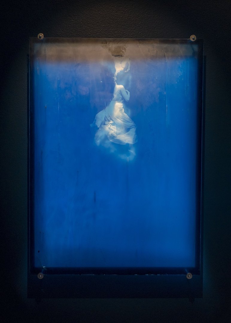 This installation is a visual representation of a place that once held deep meaning for me. Even after I left, I kept the memory close, preserved in its own way. As I got older, I began to forget the place that had meant so much to me. The place still exists, but it no longer holds the same importance it once did. I find myself revisiting moments rather than truly living them again. This work lives in that in-between space: the version of the place that moves on without me, and the one that lives on in my heart. This is the largest class plate in my series which is 110cm by 80cm. The process is cyanotype on glass which is a difficult and advanced process which requires patience, skill and experience. I mounted the images 10 cm away from the wall which gives the image movement due to the shadow produced by the plate and overhead light. This project has been awarded the Region Västerbotten (Alva Gallery) scholarship and is exposed in Bildmuseet (one of Sweden’s foremost venues for international contemporary art) for the summer.
