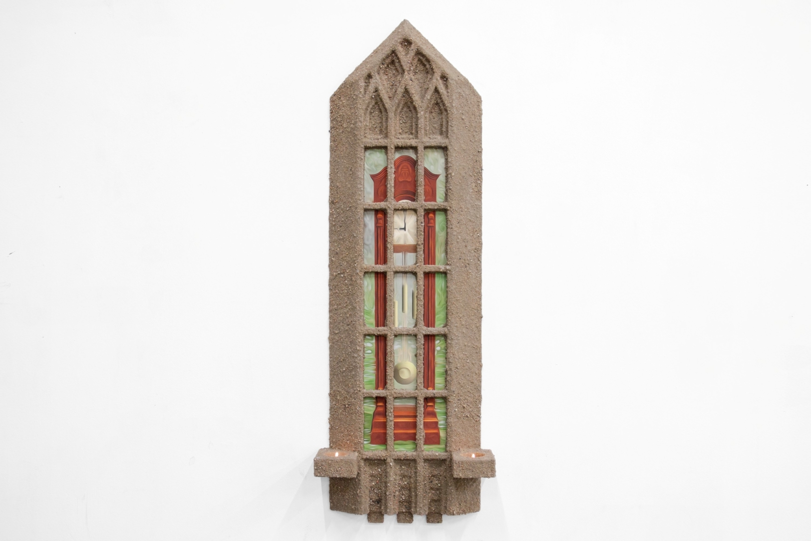 Trükivärv ja akrüül lõuendil, männipuit, klambrid, PLA, betoon, PVA, vesi, teeküünlad, polt, kruvi, epoksiidliim