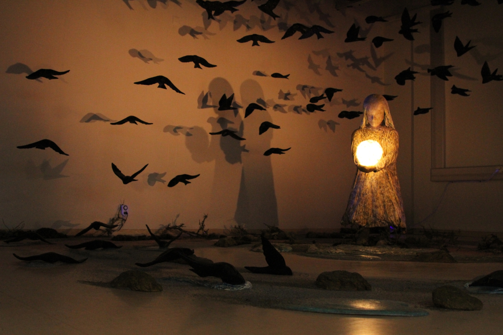 plaster, PU-foam, wood, acrylic, plastic, moss, metal, styrox, sand and lights In this work, I have created a kind of three-dimensional map of my own experience as part of the universe. This map inseparably includes both the common world that is at everyone’s fingertips and my most personal experiences.
