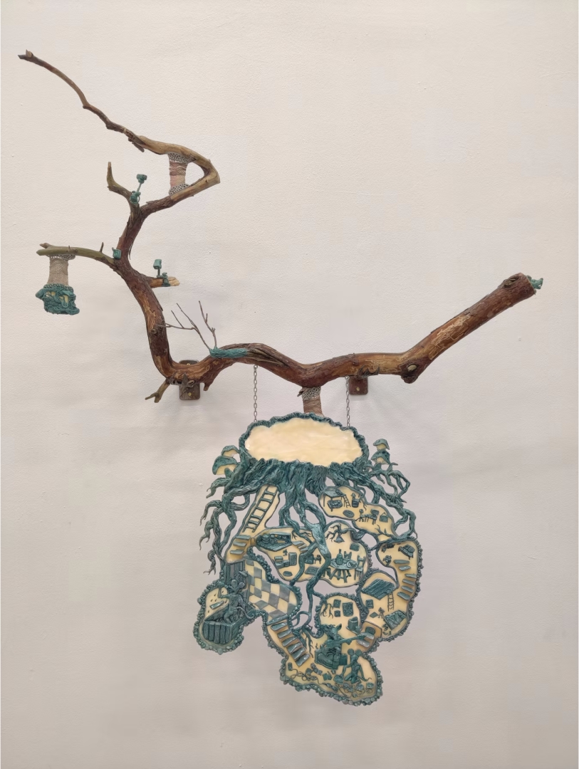 Clay, resin, alder branch, iron