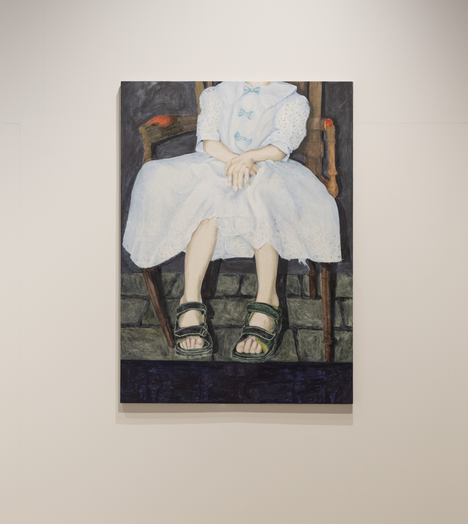 I have tried to listen to silence. Sometimes silence comes across by chance; during winter frost by a field, in between a lightningbolt and a thunderclap, or in the deep shadows of baroque paintings. I don’t know how to describe silence in words. Silence keeps taking its shape in liminality; in both its spatial and psychological forms. In places lost and bypassing. It is in between of celestial and sad, luminous and dark. In the question when it is silence and when being silenced. The occurrences on no one’s land, things not happening, things unreachable. Lost identity finding its form and a try out to be present now. In my body of work I strived to create room for visual silence inside the Gallery space. With installation choices I created a zone that invites the viewer deeper into the space of the paintings. Colors darken towards the corner, and the void in the paintings becomes more reachable, a space to almost step into. I think of painting as an extension of the body. Paintings themselves are shadows cast of the feelings, observations and thoughts experienced during the act of painting. Researching tenderness and elegiac travel alongside my artistic work. I have painted the series of four large scale paintings mainly with dark tinted oil paints on linen canvas.