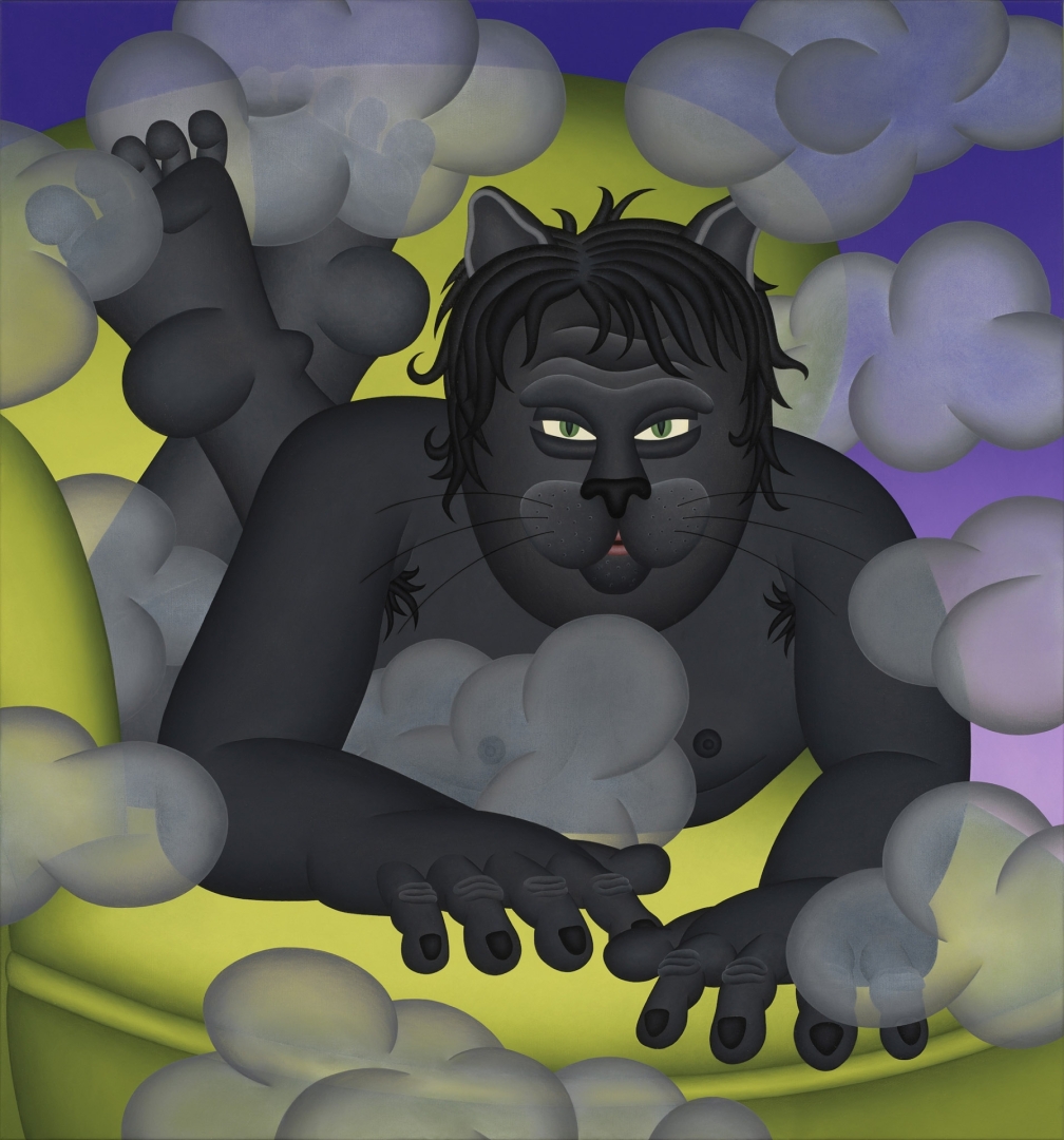 Teos kujutab kõikevõitvat musta kassi, kelle kaudu autor uurib oma minapildi nihestunud tahke.
