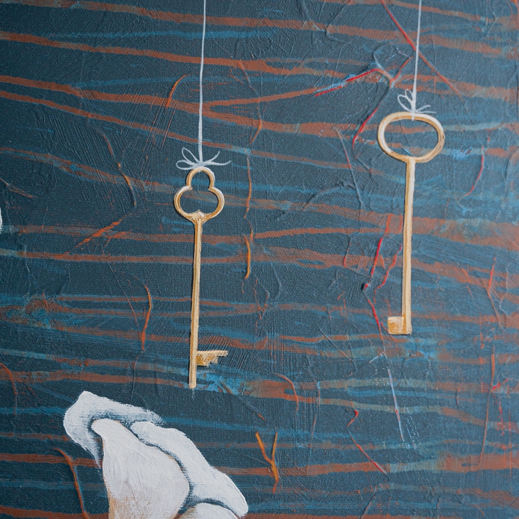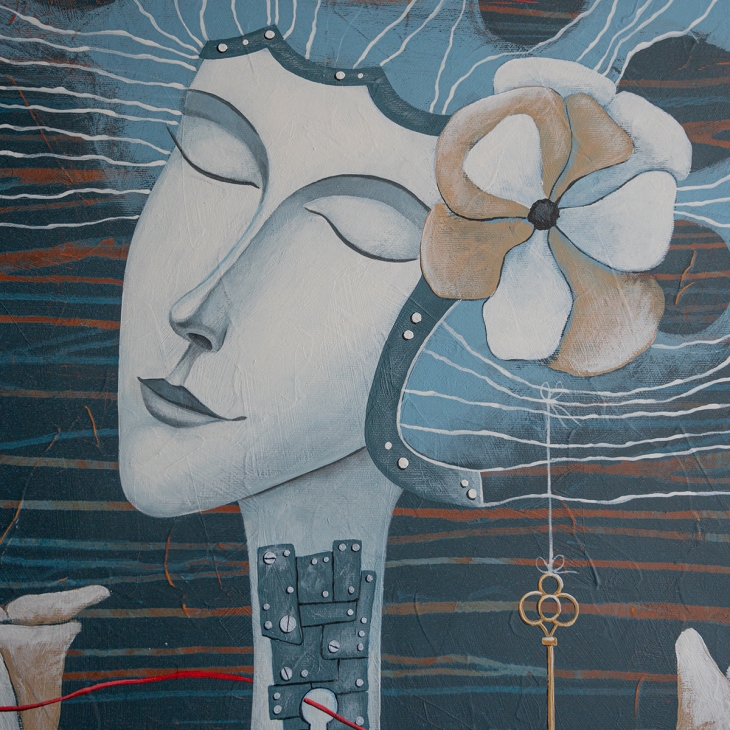 The painting symbolizes the inner state of femininity, strength, fragility, and spiritual growth.