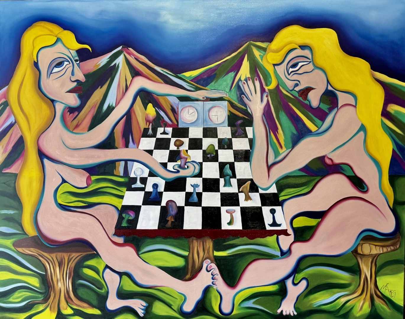 * Maal kujutab kahte naist, kes mängivad malet, ent see mäng ei ole strateegiline vastasseis, vaid pigem piiride nihutamine. Nad on alasti, ajatus ruumis, kus maised reeglid ei kehti. Nende varbad on seotud, vihjates juurtele, nähtamatutele sidemetele, mis ühendavad neid nii üksteise kui ka millegi suuremaga. Teos uurib vabaduse ja piiratuse vahelist pinget: kas piirid on kaitse või vangla, ja kas neid piire saab murda ilma midagi kaotamata?