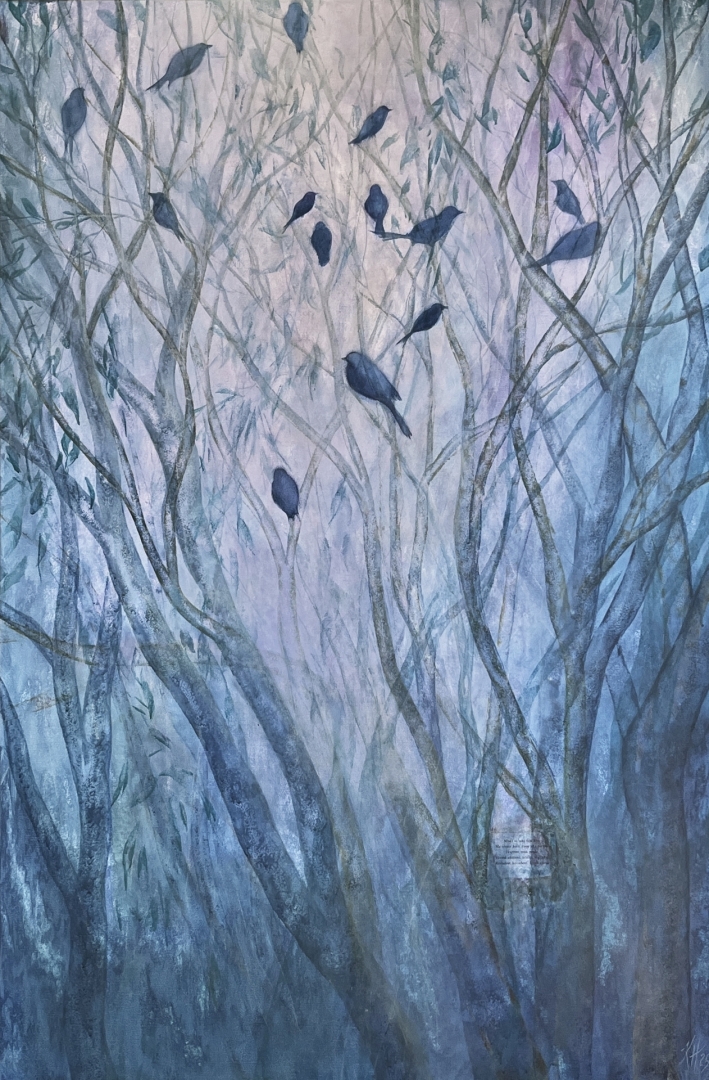 Linnud kannavad nad endas sümboolikat, mis viitab hinge igavikulisusele. Linnud võivad olla hinge kandjateks või piiriületajateks meie maailma ja teispoolsuse vahel. Maal on osalenud ArtDepoo galeriis näitusel Nähtamatud Niidid.