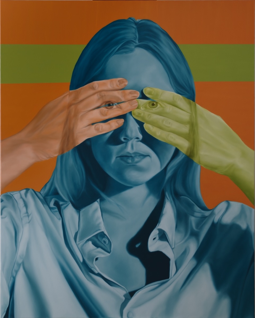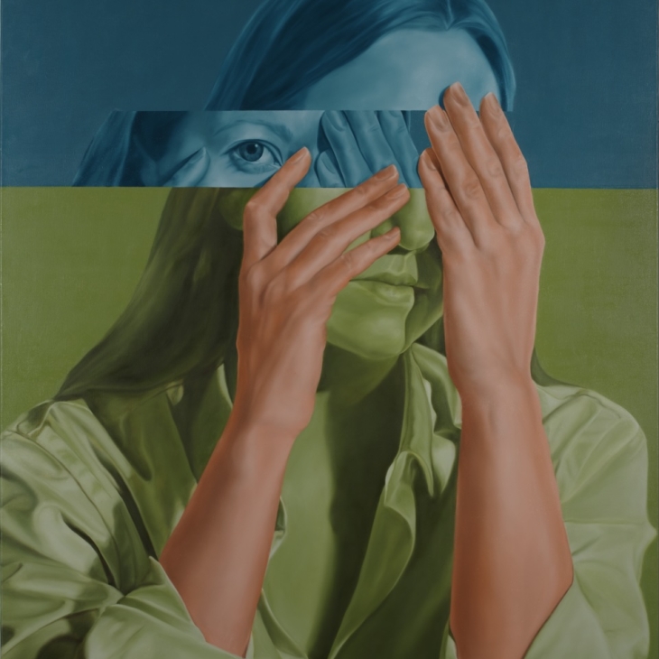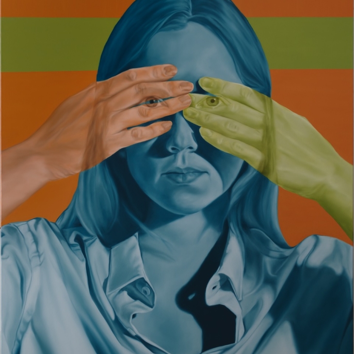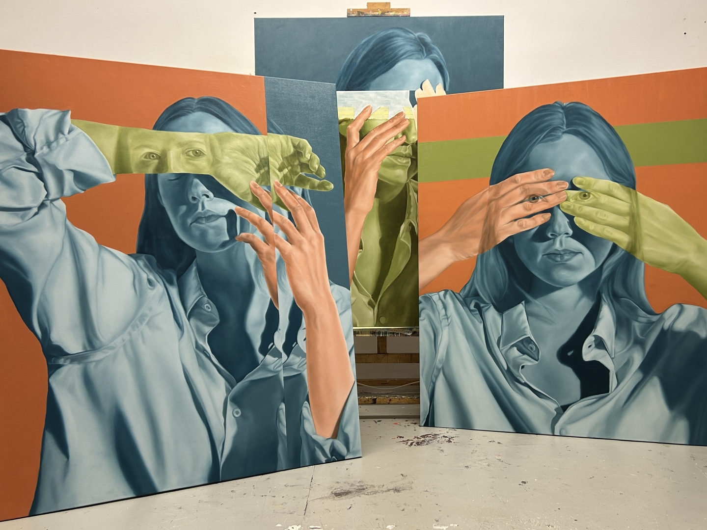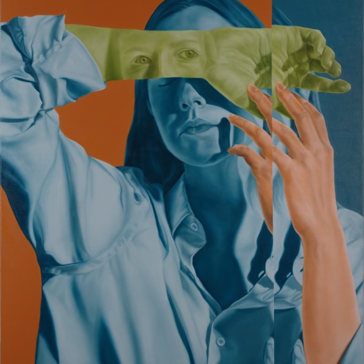 Painting series “The Trilogy of Dissonance” was completed as my bachelor’s thesis and is accompanied by a theoretical component titled “Cognitive Dissonance in the Case of Speciesism.” These three paintings – “Doubt,” “Dilemma,” and “Clarity” – are my artistic representation of cognitive dissonance as a phenomenon that enables speciesism (species chauvinism). The project is influenced by the dissonances I experienced within myself and the process, which ultimately led to a complete paradigm shift – from a speciesist worldview, in which other species are believed to exist for human benefit, to veganism, which recognizes that all animals, including humans, have intrinsic value and the right to bodily integrity. In my thesis, I propose the hypothesis that when we treat non-human animals as objects, materials, or renewable resources, this attitude can easily extend to all those perceived as having lower cognitive capacity than the dominant group – for example, children, the elderly, and people with intellectual disabilities – or those who differ based on other traits such as race, gender identity, or physical disability. Drawing on the principles of intersectional feminism, I examine the challenges faced by various minority groups in human society, comparing these to the treatment animals receive. I explore the parallels between speciesism and other forms of oppression, such as ableism and othering etc. As a conscious choice, this painting series contains no visual reference to speciesism; instead, I focus on the cognitive dissonance that arises solely within the human psyche, using compositional shifts and contrasting elements. The theme centers on the animal at the top of the power dynamic – the human. The paradox lies in the fact that when people begin to perceive the interconnectedness of different forms of oppression, it deepens the understanding that we ourselves are not immune to the effects of speciesist violence. The resulting series builds upon my solo exhibition “Shared Space” (Tartu Art House, October 11 – November 10, 2024). That earlier series centered on a symbolic dialogue between two female individuals of different species – a woman and a chicken. With this I referred the potential for empathy in human society through self-reflection.