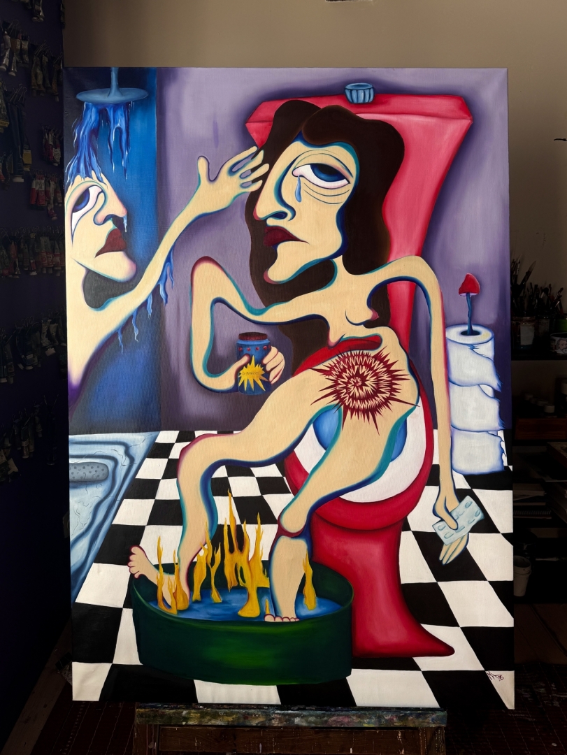 Teos on sündinud aastatepikkusest vaikusest ja kroonilisest valust, mis on saatnud kunstniku teekonda. See on aus sissevaade võitlusse tsüstiidiga, kus keha dikteerib reeglid. Samas on maal irooniline monument Eesti sotsiaalsüsteemile: vabakutselise kunstniku tervis on luksuskaup, mida saab endale lubada vaid siis, kui looming on piisavalt tulus.