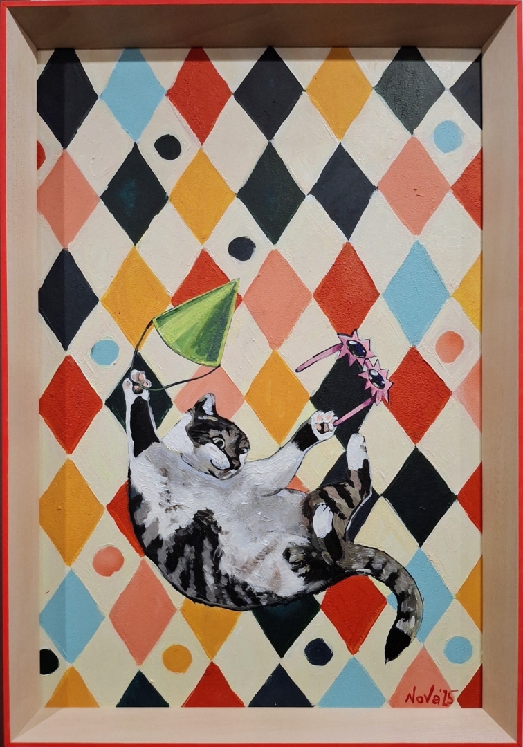 Krunditud tahvel Oh, kassid on lihtsalt minu igavene inspiratsioon! Seekord “varastasin” foto oma sõbra kassist Marsist, kes rõõmsalt oma värvilisel vaibal rullis ja lõõgastas. Ja ma kujutasin ette, et ta oleks võinud kassina mingit “rasket tööd” teinud, ja nüüd on see töö läbi ja kõva pidutsemine käib .