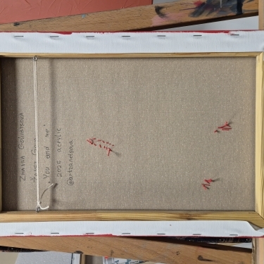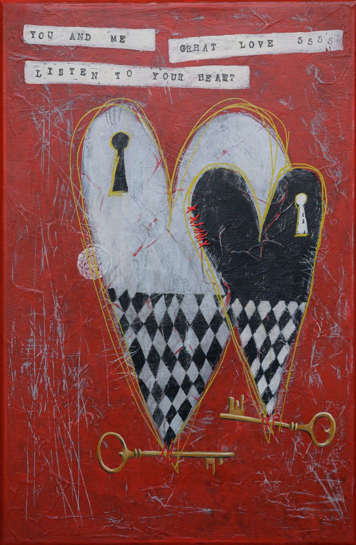 The painting conveys the theme of love, trust, guardians of the heart and the symbolic connection between people – at once tender and fragile.