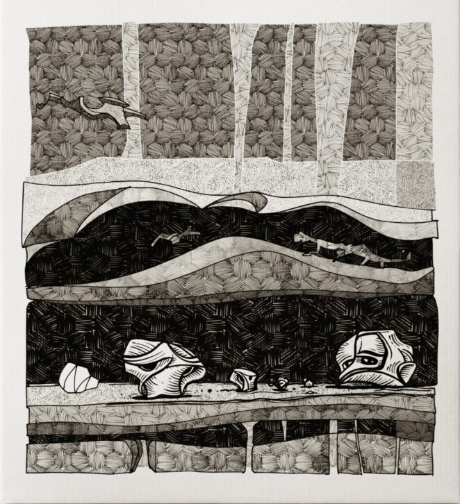 Kevadnäituse mälumaastikku rikastab Asko Künnap, kes kirjaniku ja graafikuna tõlgib kollektiivse mälu visuaalseks kujundikeeleks. Tema seeria ei illustreeri, vaid mõtestab ümber Jaan Krossi 1950.–1960. aastate luulet. Kui Krossihilisemad romaanid on vaoshoitud ja intellektuaalsed, siis tolleaegne luule on täis “teistmoodi tuult” – see on rüht, trots ja eetiline vundament. Üks peamisi sõnumeid on sisemine vabadus keset välist vangistust. Ta ei räägi ohvrirollist, vaid vastutusest oma saatuse ees. Vaimset ruumi ei saa okastraadiga piirata. Kirjutades Roomast, renessansist või meresõitjatest keset steppi, kuulutas ta oma kuuluvust Euroopa kultuuriruumi. See oli poliitiline akt – keeldumine olemast “nõukogude vang”, valides olemise “maailmakodanikuks”.