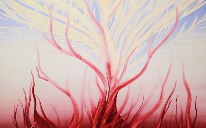The subjects of Raatikainen’s paintings stem from a vivid inner world as vision-like images. The paintings’ interpretations of inner states and spaces of change depict transforming forces that elude concepts and narratives, forces that flow beneath the surface in all of us.