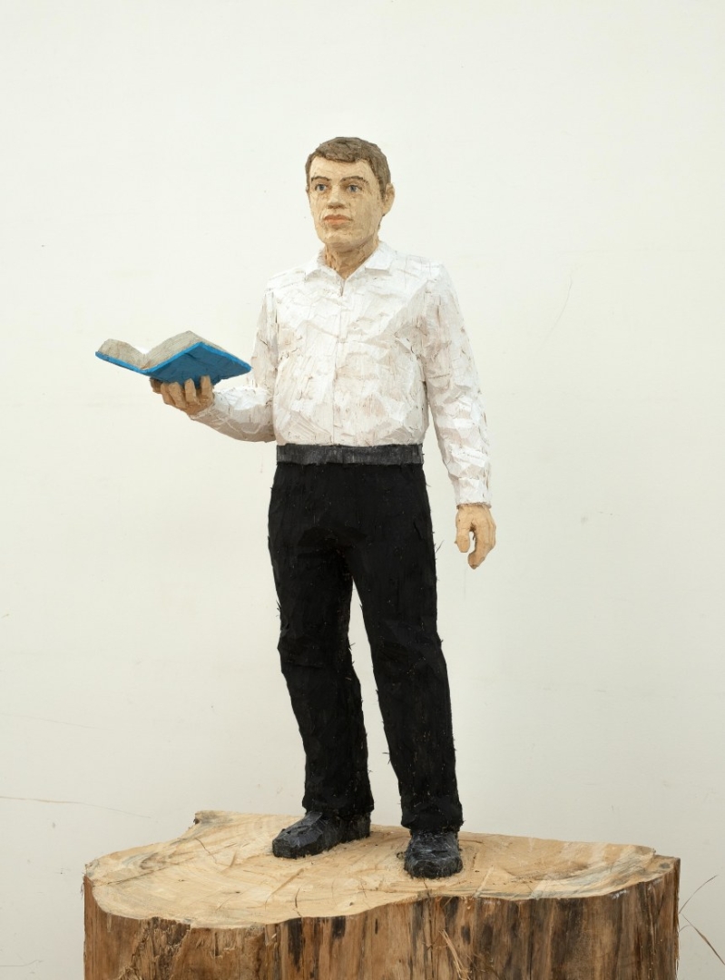 Stephan Balkenhol (b. 1957) studied at the Hochschule für bildende Künste in Hamburg and has served as a professor at the Akademie für Bildende Künste in Karlsruhe since 1992. His sculptures are held in major international collections, including the Peggy Guggenheim Collection in Venice, the Staatliche Museen in Berlin, Kunsthalle Hamburg, the Museum für Moderne Kunst in Frankfurt, and the Art Institute of Chicago. He lives and works in Karlsruhe, Kassel, and Berlin, as well as in Meisenthal, France.